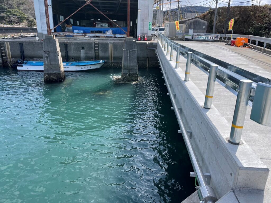 教育施設敷地に隣接する護岸部にて、配管の更新工事を行いました。コンクリート構造物の側面に沿って新しい配管を設置し、専用金具でしっかりと固定しています。海水や潮風の影響を受けやすい場所のため、耐久性に配慮した材料と取り付け方法で施工を実施しました。